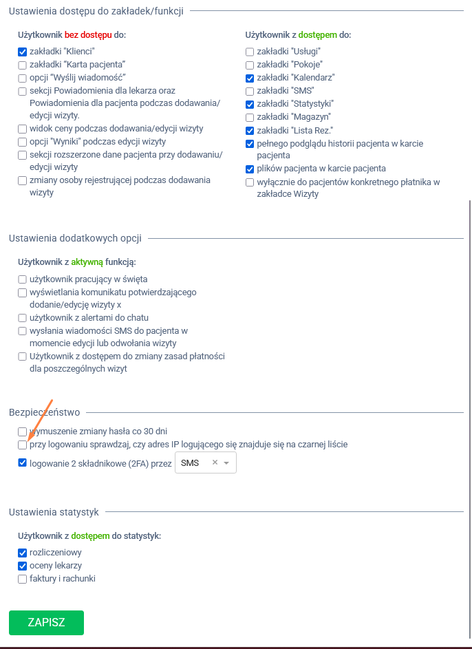 • Przy logowaniu system sprawdza, czy adres IP użytkownika, który próbuje się zalogować do systemu, znajduje się na czarnej liście.