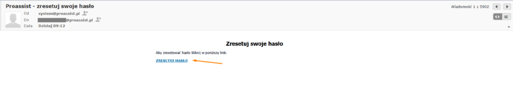 1. Na adres e-mail, który służy Ci jako login do systemu Proassist zostanie wysłany link do zresetowania hasła.