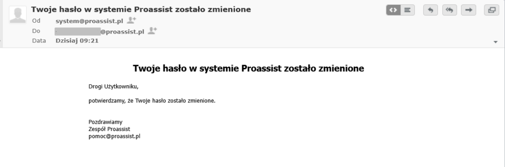 Użytkownik otrzyma również mail potwierdzający zmianę hasła.