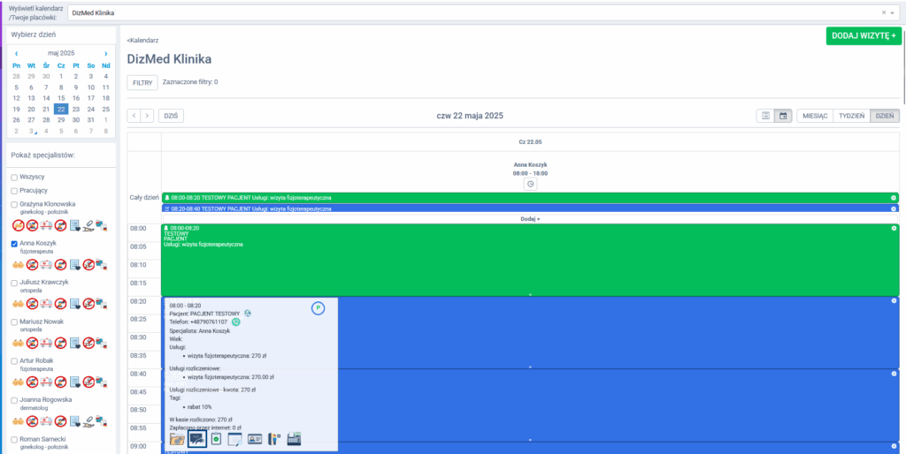 - Najedź kursorem myszy na odpowiednią wizytę.