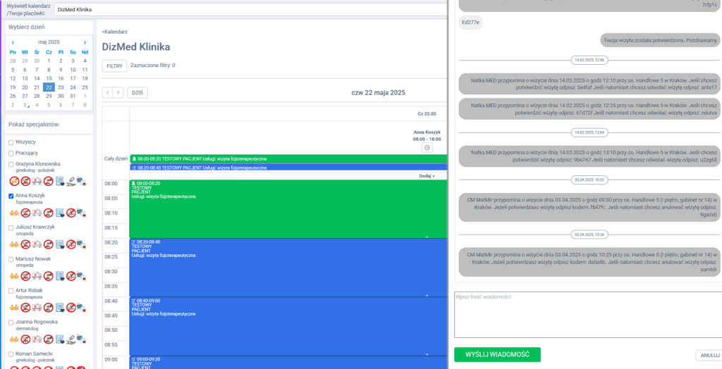 Wszystkie wiadomości SMS będą prezentowane w formie przejrzystej rozmowy – jedna pod drugą – co ułatwia przeglądanie historii kontaktu z pacjentem.