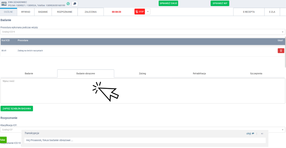 - przejście do sekcji badanie obrazowe: “Hej Proassist, fokus badanie obrazowe”