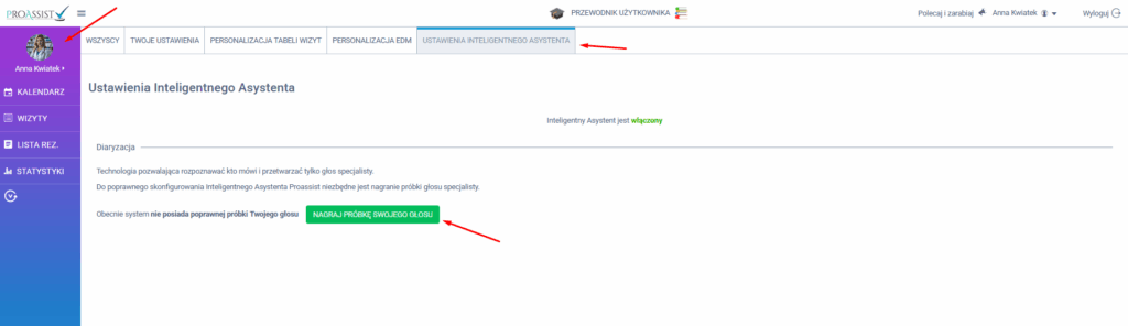 - Wybierz zakładkę USTAWIENIA INTELIGENTNEGO ASYSTENTA