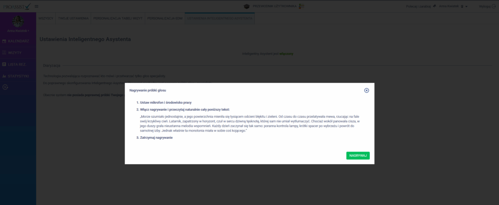 „Hej Proassist, zapisz rehabilitację: [nazwa szablonu]”