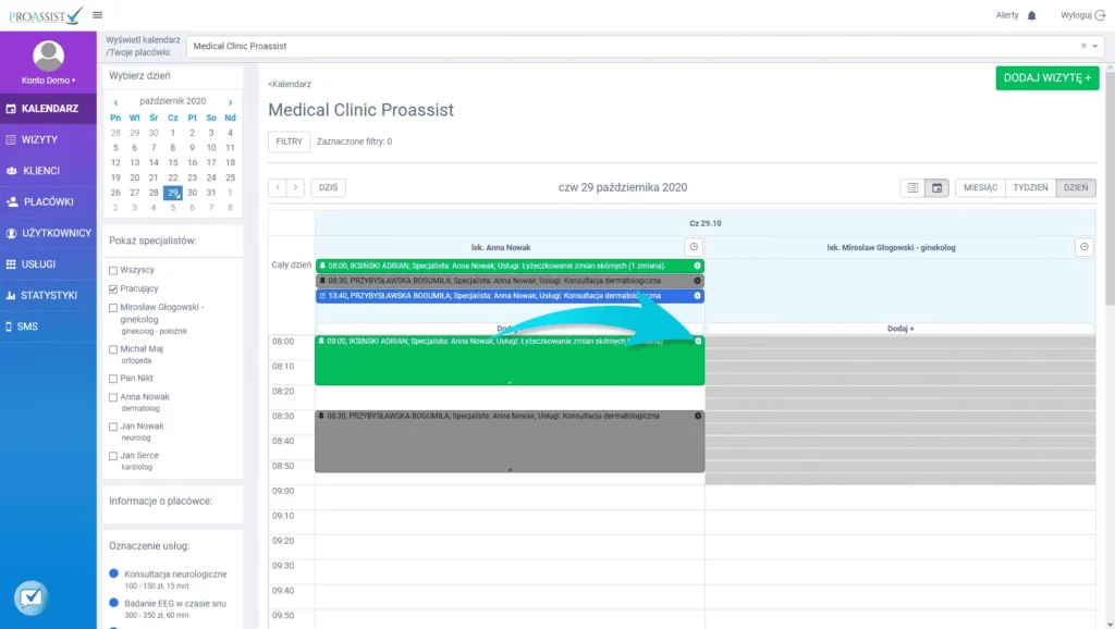 W ten sposób wizyta zostanie odwołana, zniknie z listy aktywnych rezerwacji dla tego pacjenta.