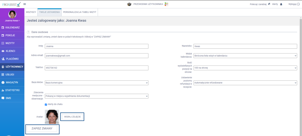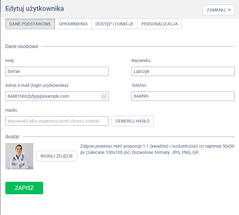 W sekcji Avatar wgraj odpowiednie zdjęcie zgodne z powyższymi wymaganiami. Kliknij ZAPISZ.