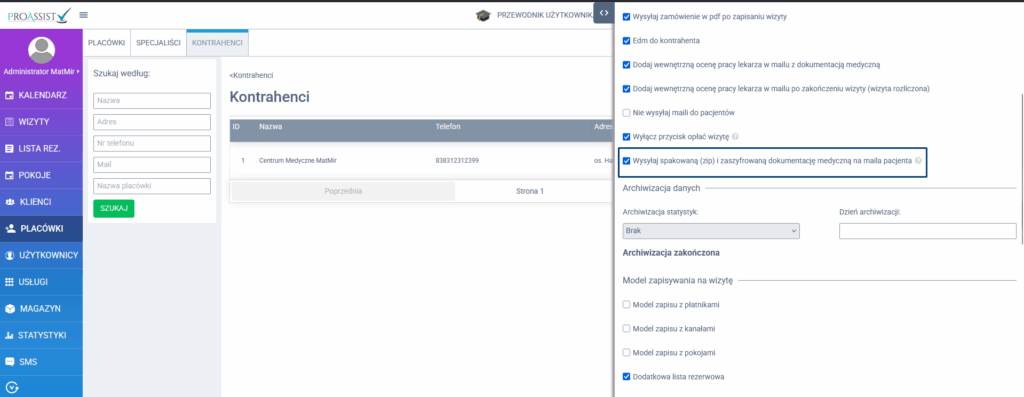 ✅ Wysyłaj spakowaną (ZIP) i zaszyfrowaną dokumentację medyczną na maila pacjenta.