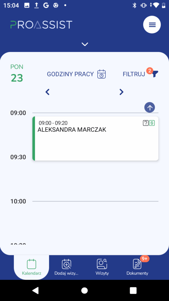 1. Kliknij w wybraną wizytę w kalendarzu.