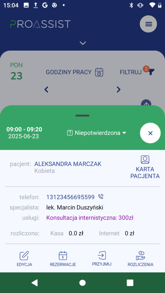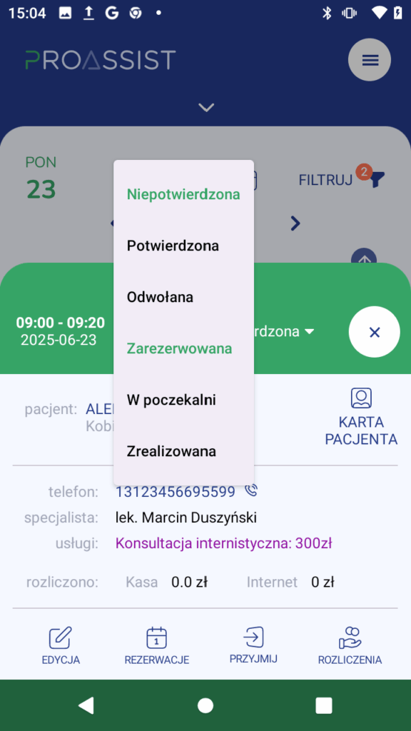 4. Status wizyty zostanie zmieniony i zapisany automatycznie.