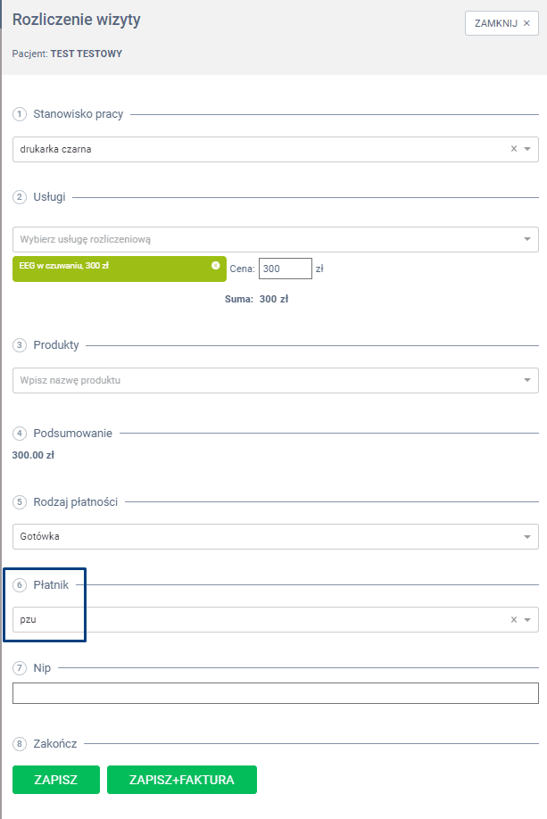 W rozliczeniu wizyty również automatycznie podstawi się odpowiedni płatnik, dzięki czemu skracamy proces finalizacji wizyty.