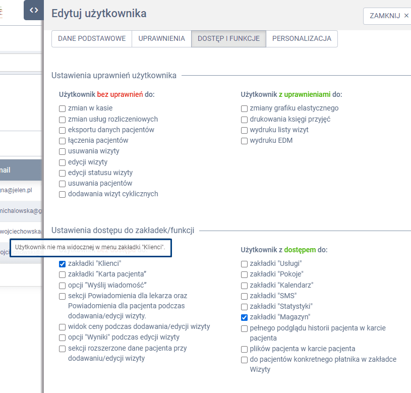 Możliwość wyłączenia dostępności zakładki KLIENCI dla wybranych użytkowników. #