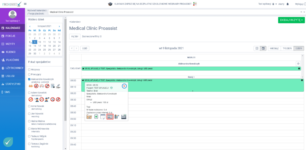 - w zakładce wizyty