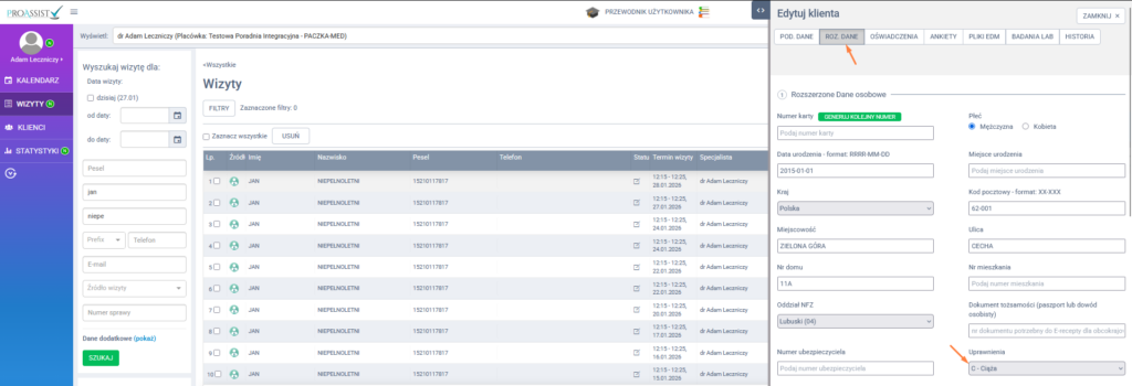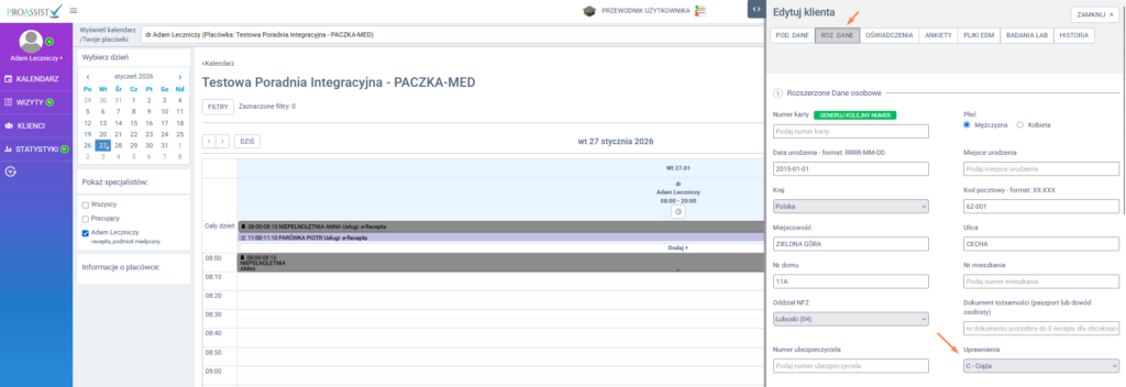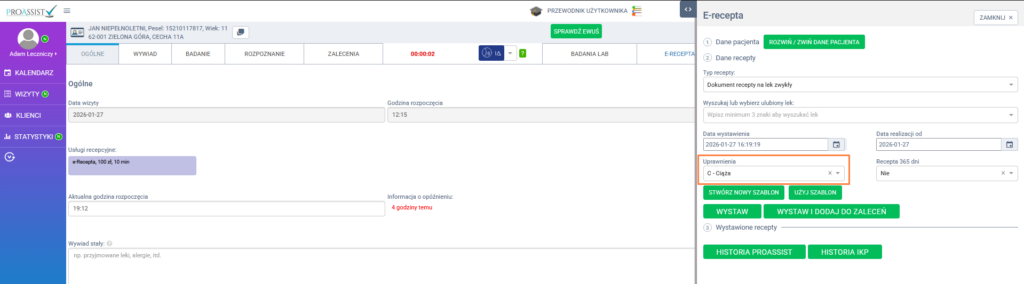 - podczas wystawiania recepty system automatycznie uzupełni właściwe uprawnienie,
