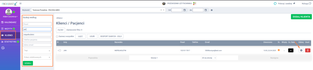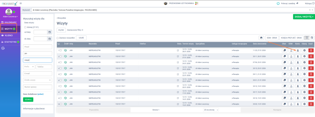- Wyszukaj odpowiedniego pacjenta lub wizytę.