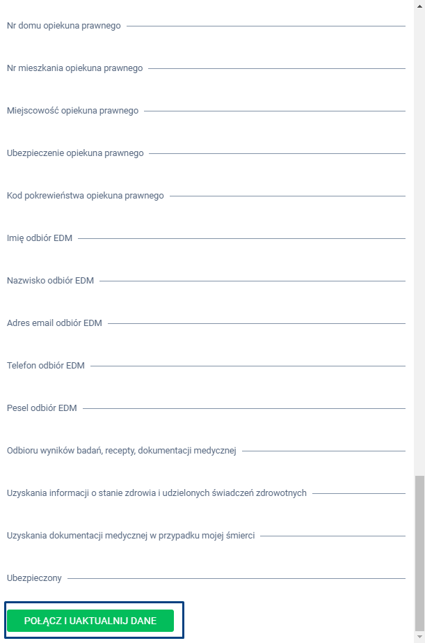 Gdy dokonasz odpowiedniego wyboru, zatwierdź zmiany klikając w zieloną zakładkę POŁĄCZ I UAKTUALNIJ DANE.