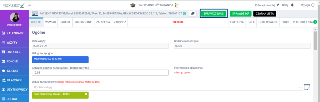 System Proassist automatycznie sprawdza status E-WUŚ dla pacjentów zapisanych na bieżący dzień. Proces odbywa się codziennie rano o 6:00.