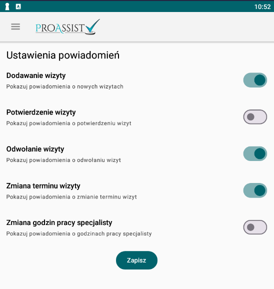 Powiadomienia push w aplikacji mobilnej Proassist #
