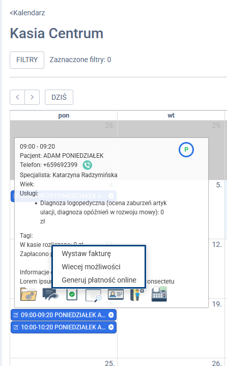 – żaden użytkownik nie zobaczy opcji „Opłać wizytę” po kliknięciu w ikonę kasy,