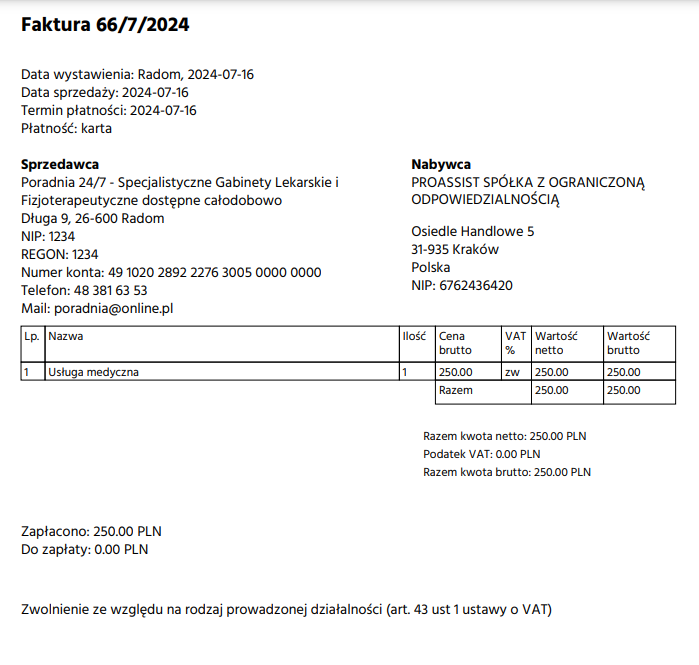 Jeżeli w Twojej placówce wykorzystujecie usługi rozliczeniowe zastosuj ten sposób wystawiania FV. Dzięki usługom rozliczeniowym automatycznie zostanie dodana pozycja na FV.