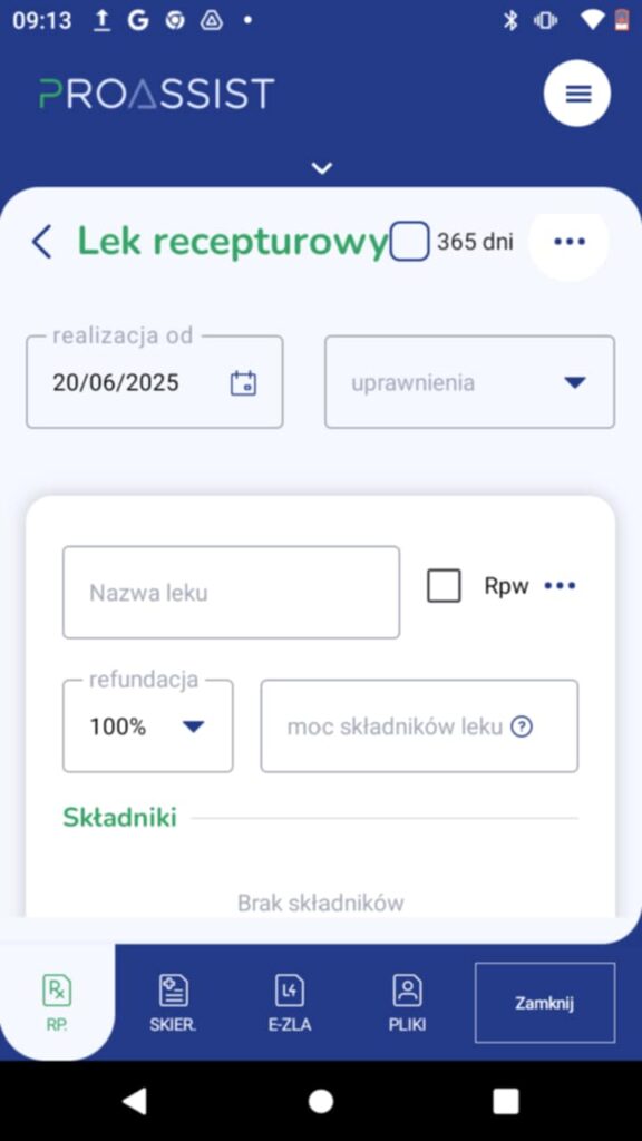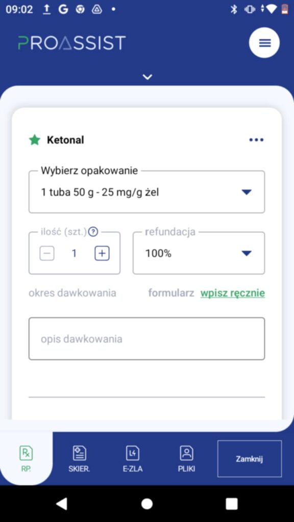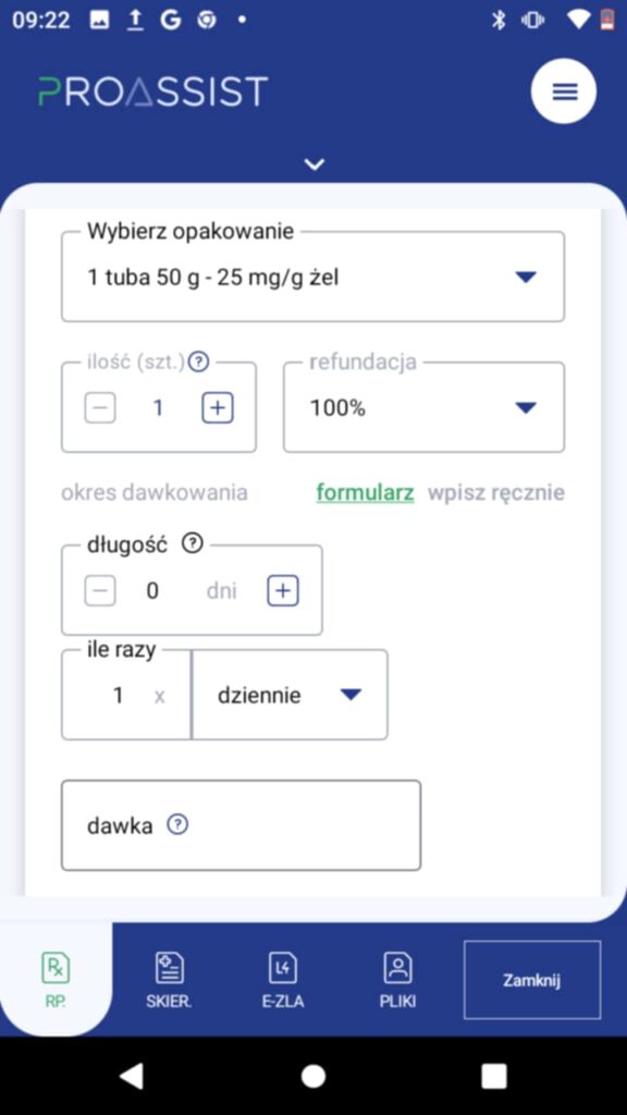 Po wyborze odpowiedniego leku z listy, uzupełnij lub zmodyfikuj informacje na temat: