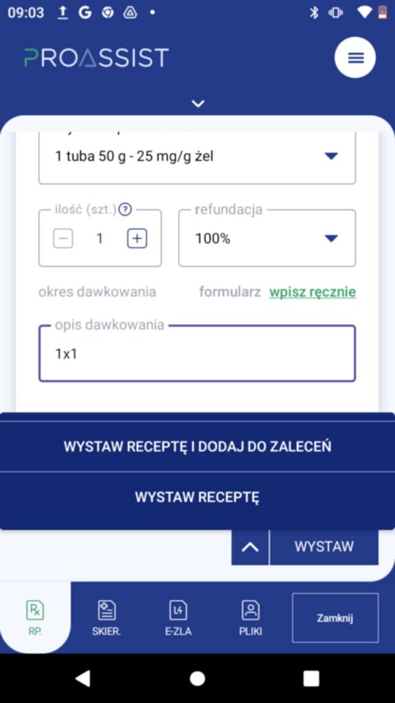 W kolejnym kroku zdefiniuj rodzaj recepty, czyli w tym przypadku RECEPTA ZWYKŁA