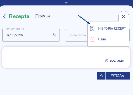 W formularzu recepty kliknij w trzy kropki poziome.
