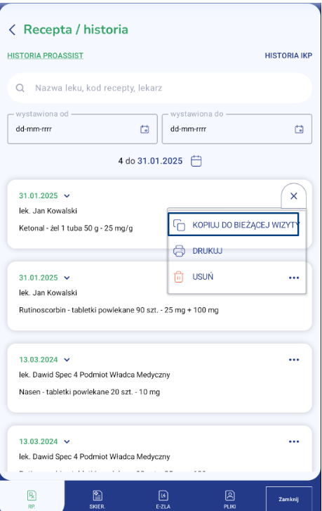 W kolejnym kroku kliknij w trzy poziome kropki i z menu wybierz opcję KOPIUJ DO BIEŻĄCEJ WIZYTY.