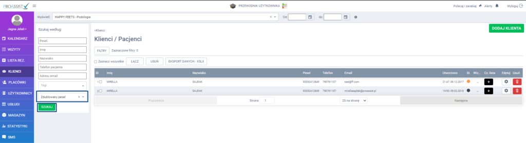 Jeżeli na przestrzeni czasu w Twojej placówce zostały utworzone karty, jako duble już istniejących – nie martw się! Proassist przygotował rozwiązanie, które pozwoli Ci na odszukanie zdublowanych kart w kilka sekund. Dzięki temu będziesz mógł je szybciej scalić i wyeliminować zdublowane karty.