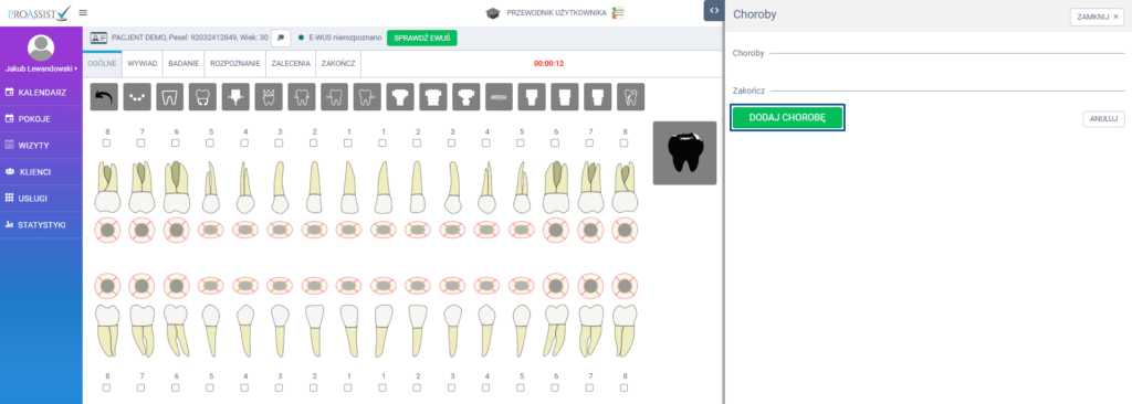 W panelu bocznym wysuwanym zdefiniuj odpowiednie choroby, poprzez kliknięcie w zieloną zakładkę DODAJ CHOROBĘ