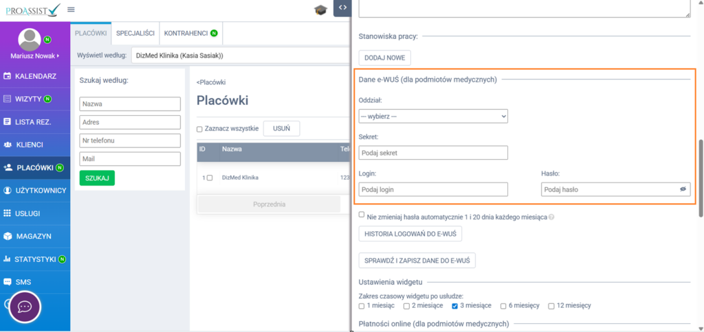 Weryfikacja e-WUŚ: konfiguracja w systemie Proassist #