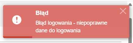Jeśli dane nie są poprawne, system wyświetli stosowny komunikat w czerwonym prostokącie.