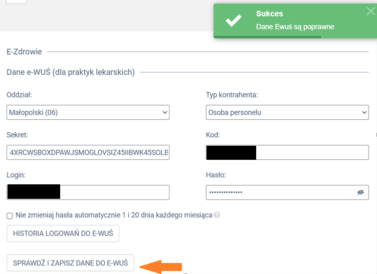 Podczas konfiguracji e-WUŚ możesz zweryfikować poprawność danych.