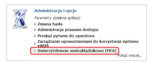 Administracja i opcje → Uwierzytelnianie wieloskładnikowe (MFA)