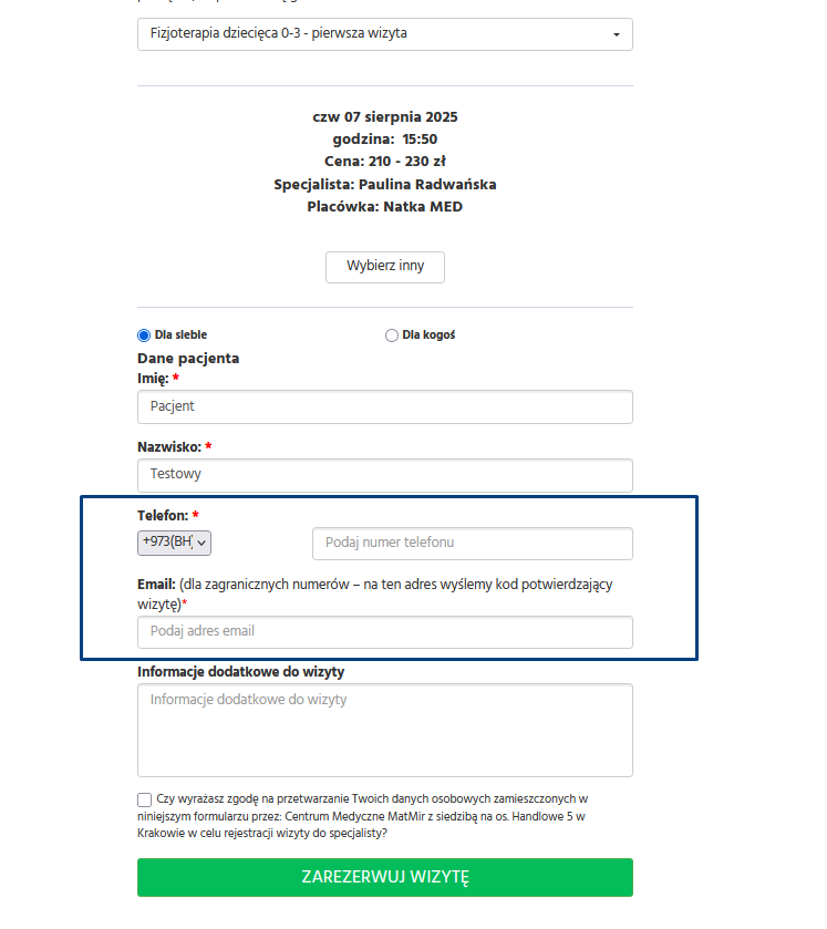🌍 Pacjenci z zagranicznym numerem telefonu (inne prefiksy niż +48)