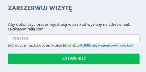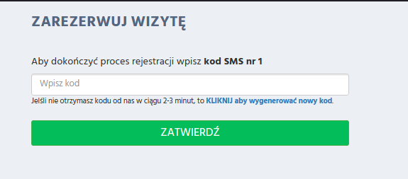 - Pacjent musi wpisać ten kod, aby potwierdzić swoją tożsamość i dokończyć rezerwację wizyty.