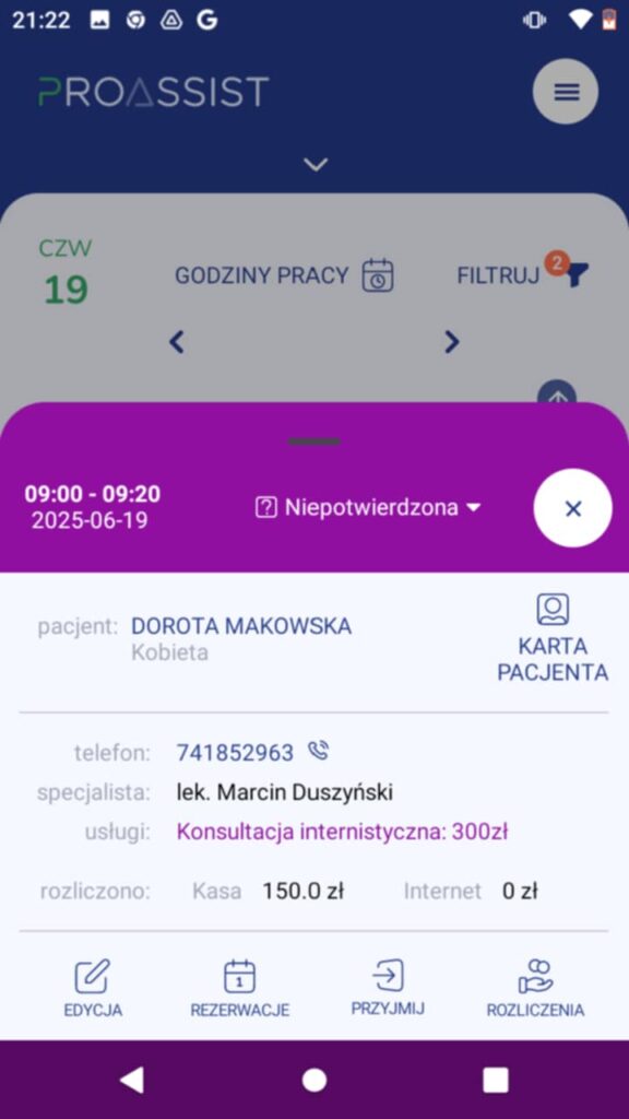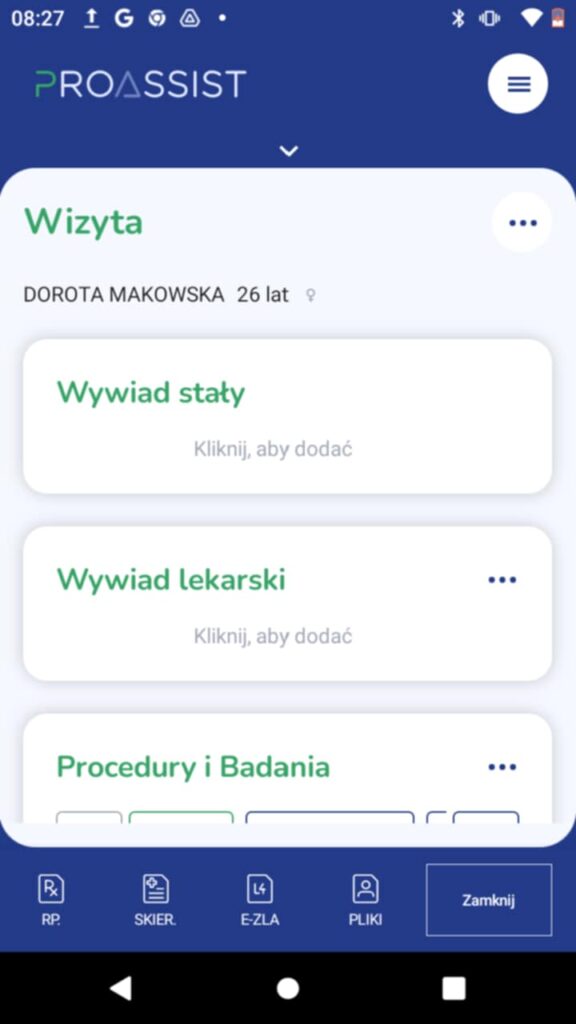 Aby wypełnić dokumentację medyczną w aplikacji mobilnej ProAssist, postępuj zgodnie z poniższymi krokami: