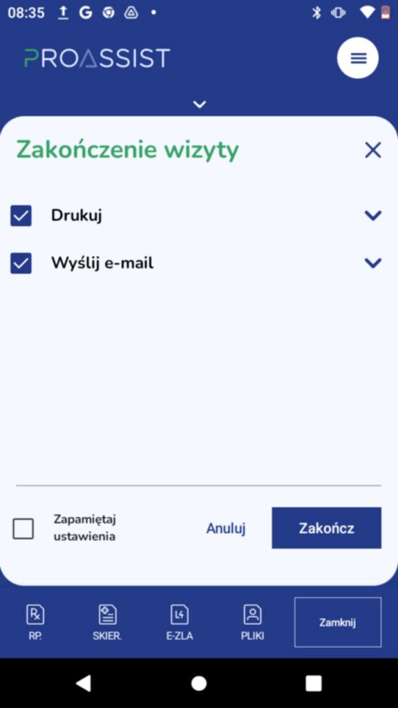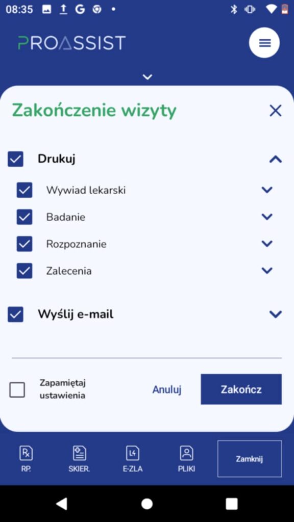 - Wypełnić dokumentację medyczną tekstowo lub głosowo.