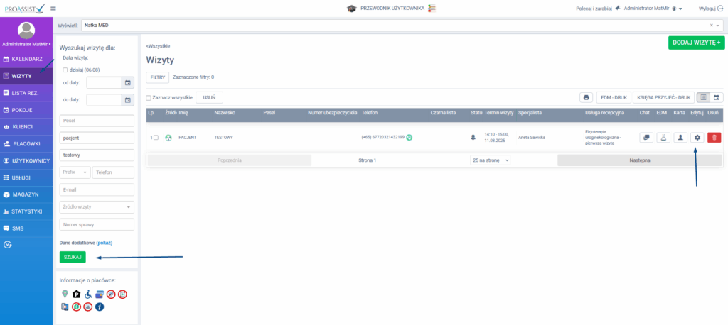 Na liście wizyt, kliknij w ikonę EDYCJI przy konkretnym terminie.