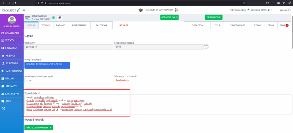 • System zawsze pobiera najnowszą wersję wywiadu stałego z ostatniej zrealizowanej wizyty pacjenta.