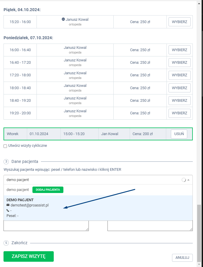 Na koniec zatwierdź rezerwację klikając w przycisk ZAPISZ WIZYTĘ.